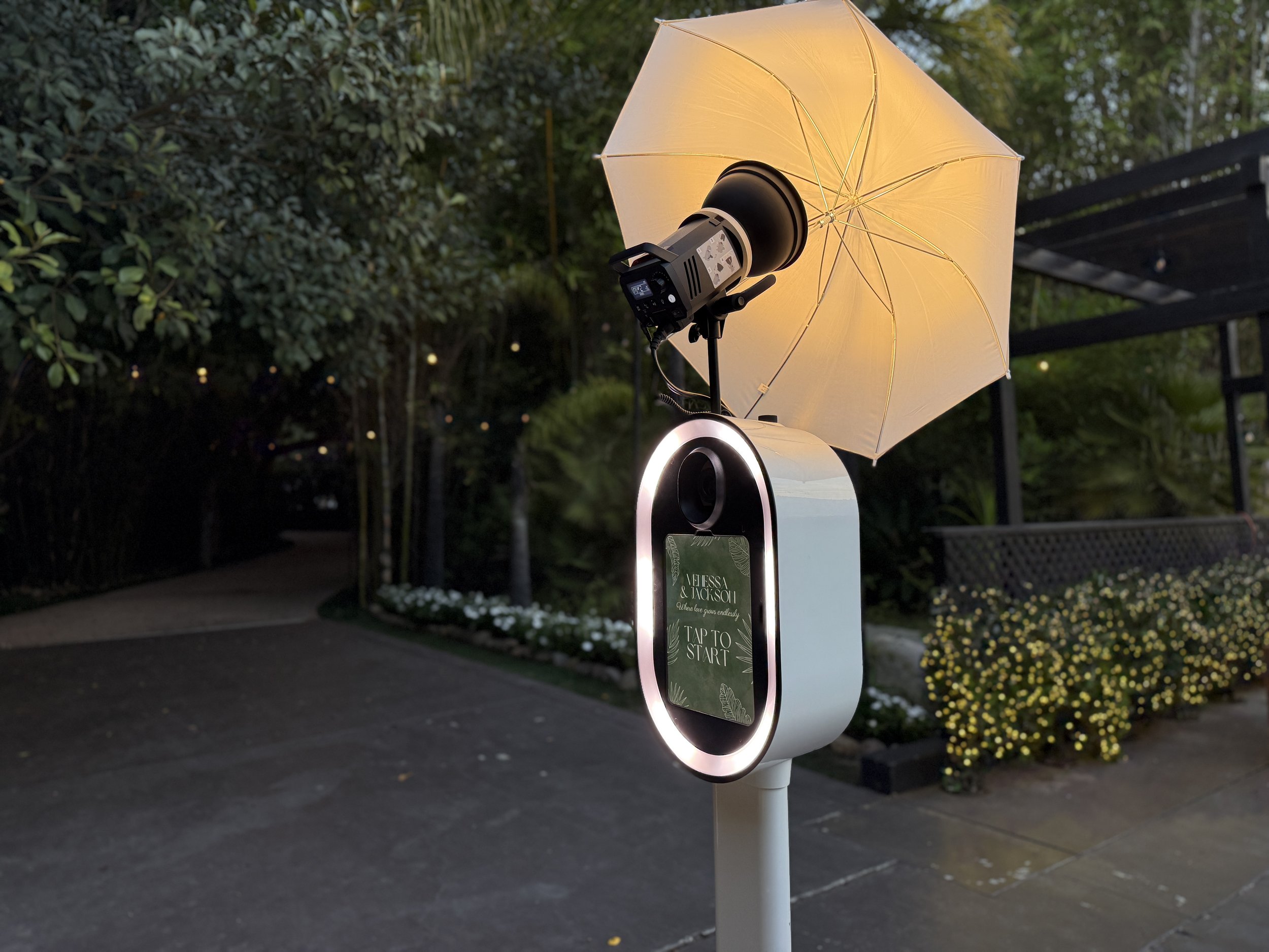 Upon arrival, guests are greeted by our tap-to-start screens, the perfect first touch to your photo booth experience. Choose from a curated collection of complimentary screens or create a fully customized design that matches your event theme or brand. Each screen is thoughtfully styled to set the tone and style of your booth, making every moment feel seamless, fun, and uniquely yours.